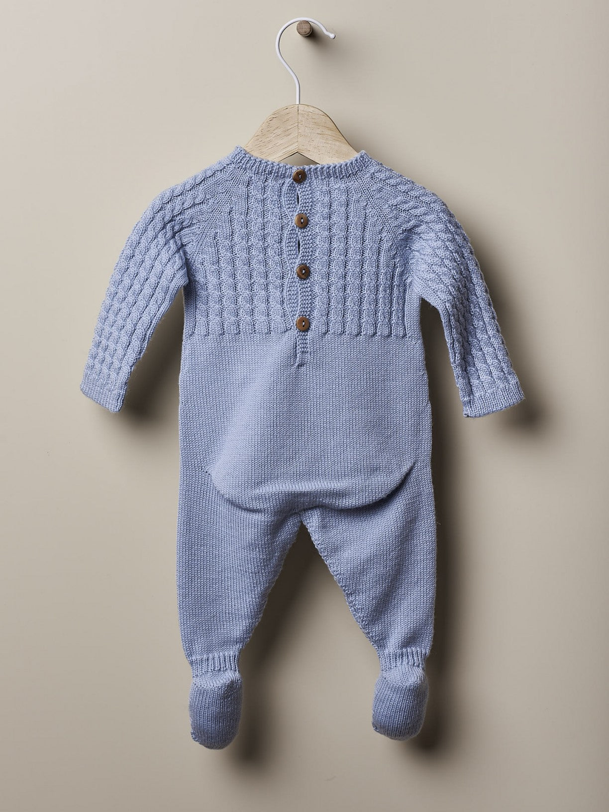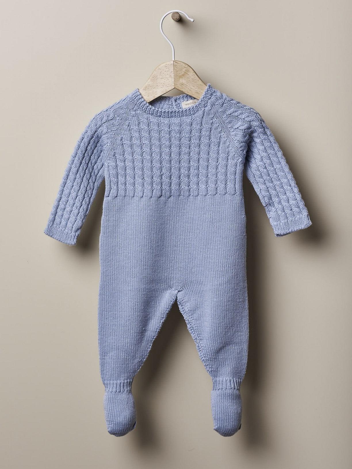 Cable Knitted Babygrow Soft Blue