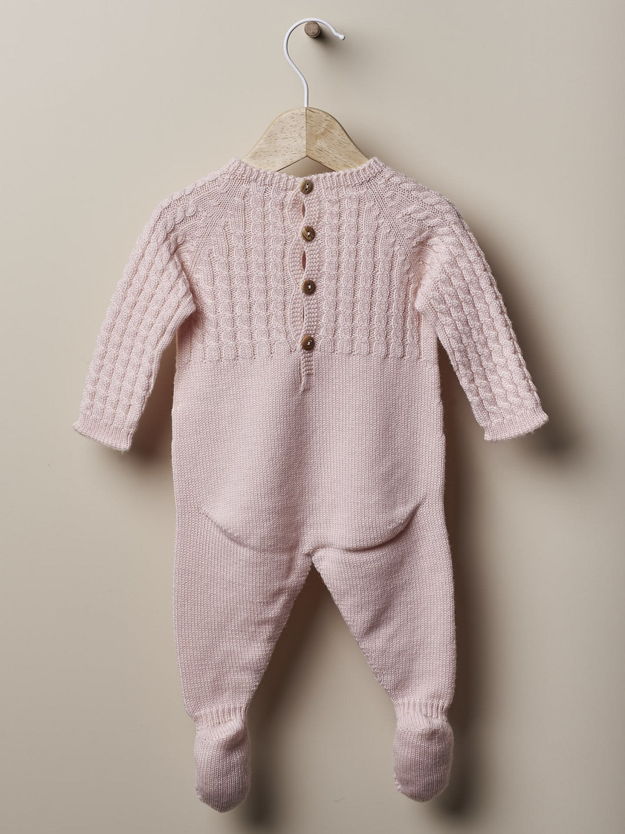 Cable Knitted Babygrow Soft Pink